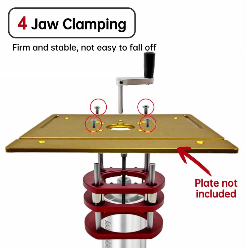 Router BaseRouter Base for Woodworking, High Strength Aluminum Alloy and Stainless Steel Router Table Base, 4 Jaw Strong Clamping with Crank Handle