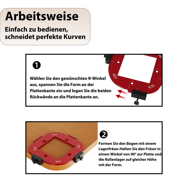 • Durable router template: 5 mm thick aluminium alloy with oxidised surface. Aluminium alloy router jig radius template lasts 10x longer than plastic models. Tested at 10,000+ milling cycles - optimal router accessory for workshops.