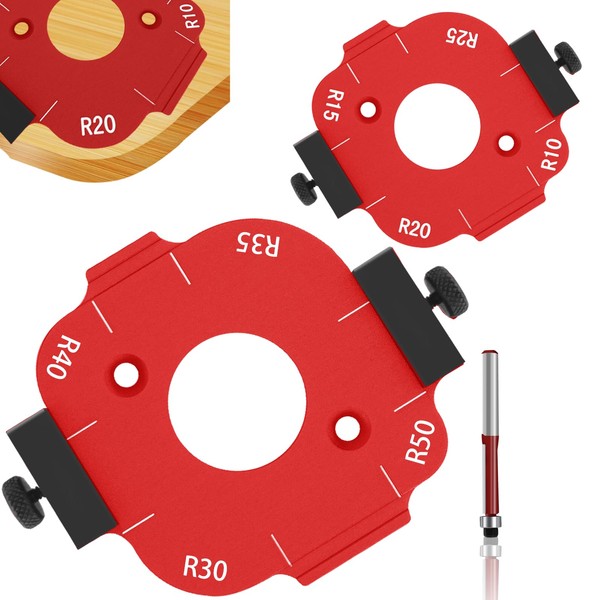 Router Jig Radius Template R10-R50 with Trimming Blade for Woodworking Tools (Red) Pack of 2