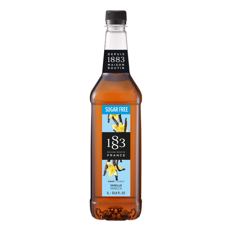 1883 Coffee Syrup, Sugar Free Vanilla Syrup for Drinks, Made in France, 1 Liter Plastic Bottle