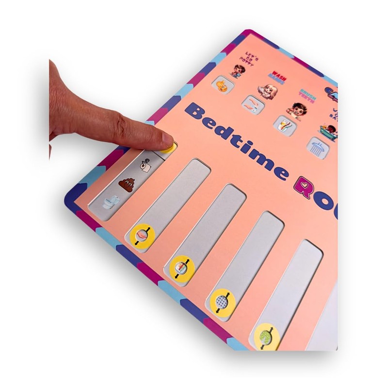 ROUTINO Bedtime Routine Chart for Kids, Visual Schedule with Interactive Paper Slider, Evening Sleep Tracker for Children, Promotes Consistent Nighttime Habits & Restful Sleep