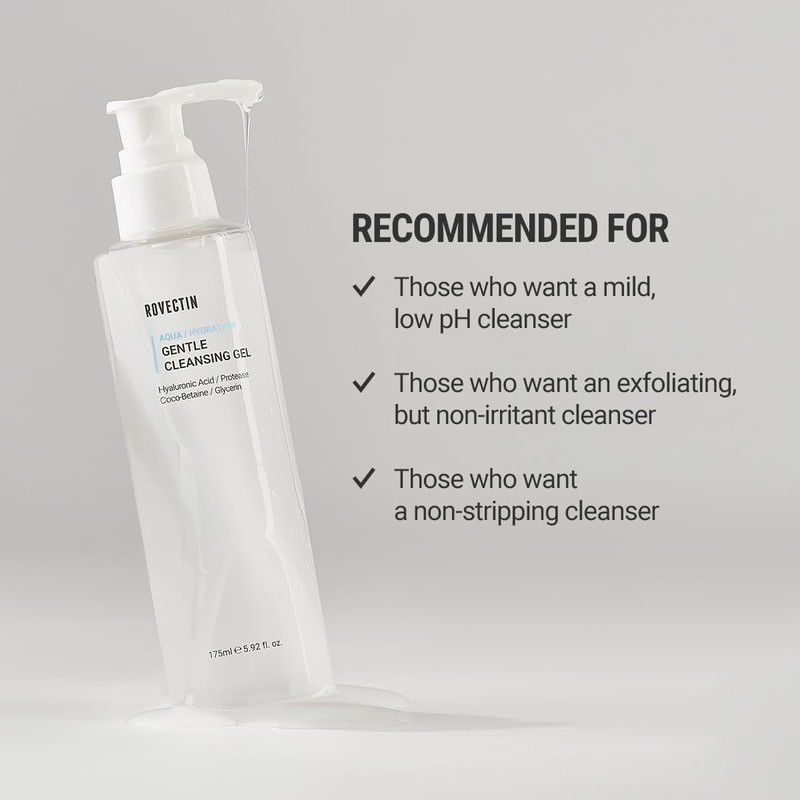 ROVECTIN Aqua Cleansing Gel (Conditioning Cleanser) Hydrating pH Balanced Facial Wash for Sensitive, Dry Skin | No Stripping, Fragrance-Free | Vegan, Korean Skincare (5.9 fl. oz)