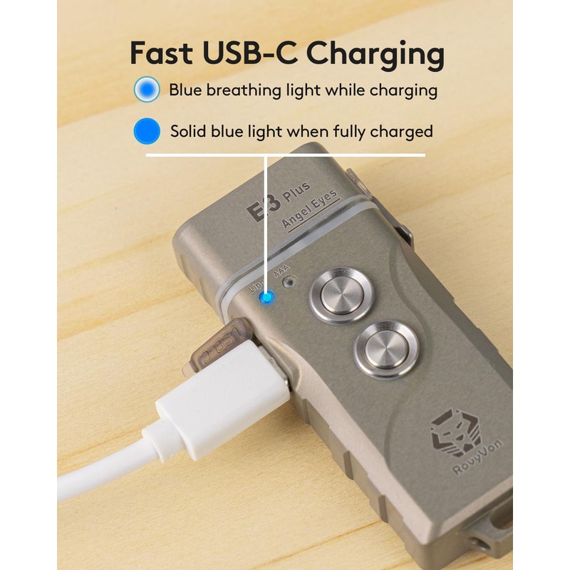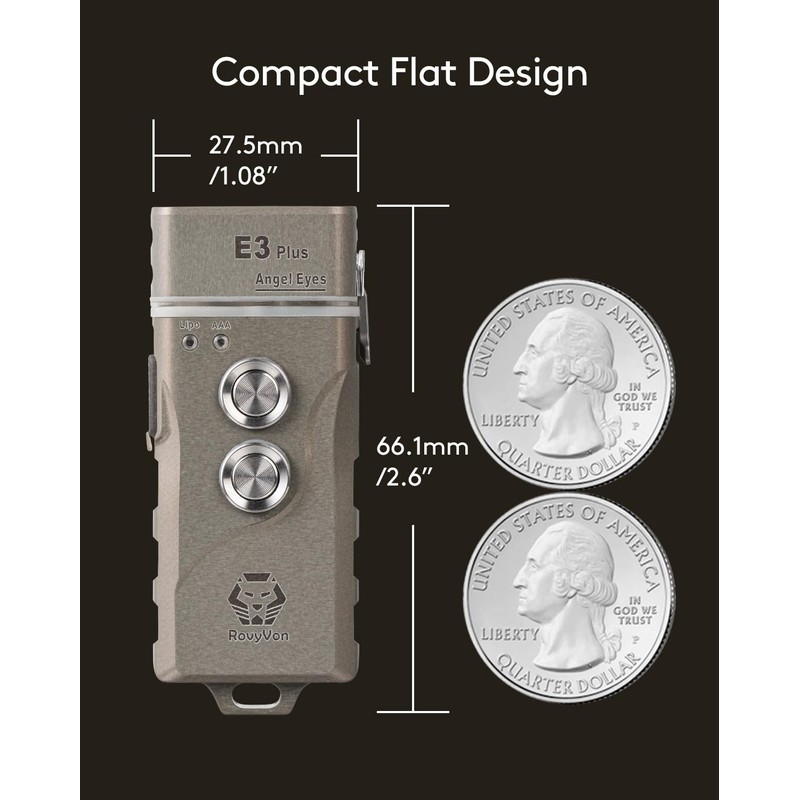 RovyVon E3 Plus 7075 EDC Flashlight USB C Rechargeable, High CRI Warm White Small Keychain Flashlight, Supports Triple A Battery Compact Flat Flashlight, Dual Power Source, Dual Switch Easy to Use.