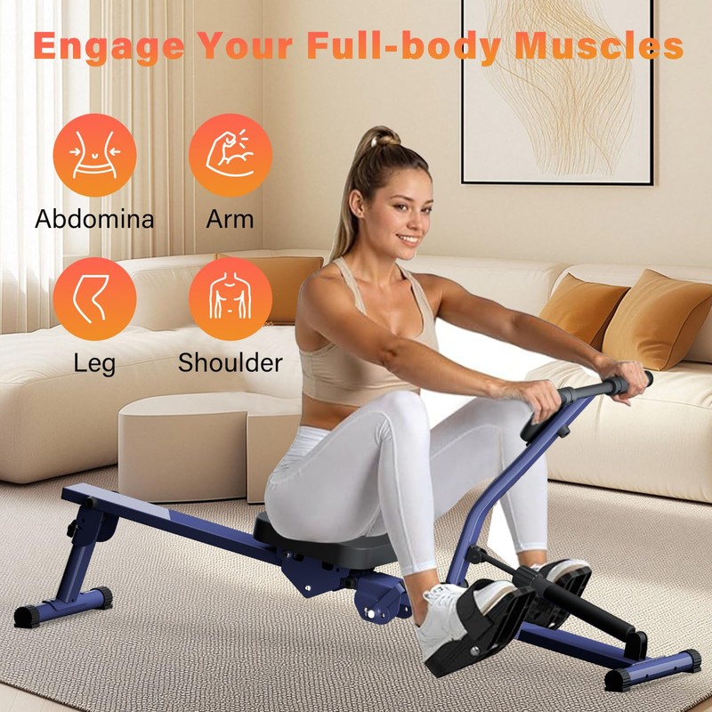 - 【ROWING MACHINES FOR HOME】 The Rowing Machine offers a full-body workout that targets core muscle group, arms, shoulders, abs, backs, legs, glutes. The low-impact rowing motion engages your entire body for maximum results