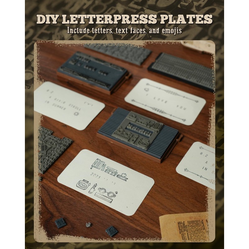 - ✔️【Where are the highlights?】: This model kit comes with rubber stamps, which can be combined and replaced independently, and there are many choices of stamp patterns. Such as numbers, kaomoji and various cartoon drawings. 20 sheets of 3.5 x 2.1 inch writing paper can be stored in the lower drawer of the machine. A box of water-based ink is also included.