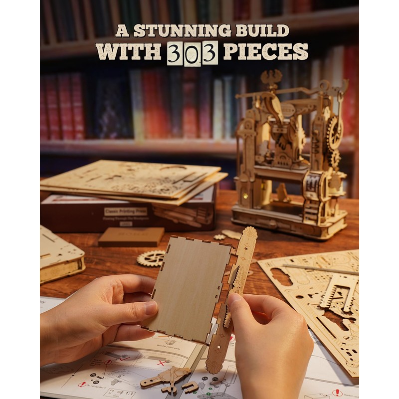 ROWOOD LK602 3D Puzzle Wooden Printing Machine, Mechanical Model Kit for Adults, DIY Wooden Construction Crafts, Cool Toy for Birthday Gifts,
