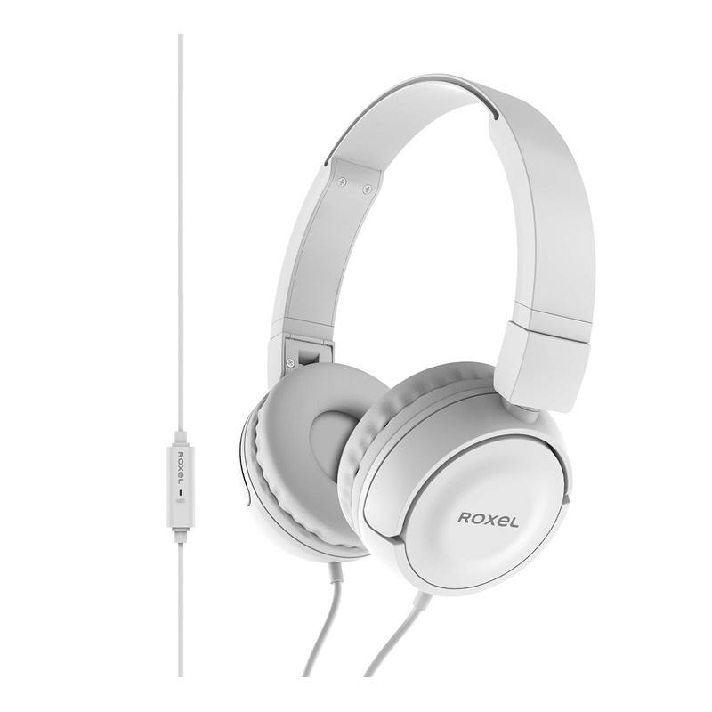 Roxel RX110 Lightweight Wired Foldable Headphones with Mic & Volume Control, On-Ear Headphones, Ergonomic Design, Answer Incoming Calls, Compatible with Android and IOS Devices (White)