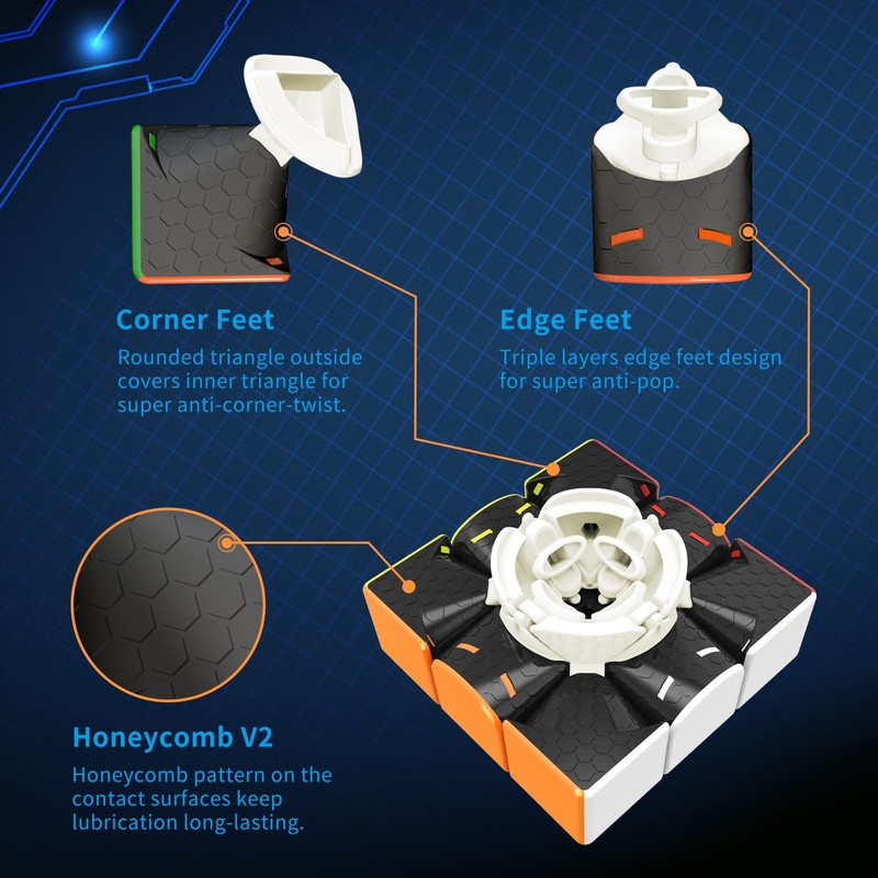 • Unique design – With great corner cutting, It is difficult to pop, good control of the cube, excellent stability. The Cube's internal corners are slightly rounded, which make it far easier and smoother to turn. All the edges are contoured and the center piece is a circle for fast and smooth cornering.