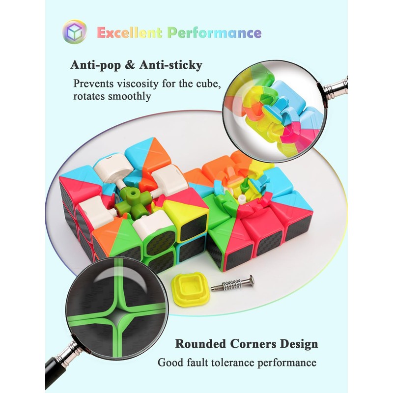 ROXENDA Magic Cube Set, Speed Cube Set [Pack of 6] - Easy Turn & Smooth Play, Super Gift IQ Games for Children (Carbon Fibre)