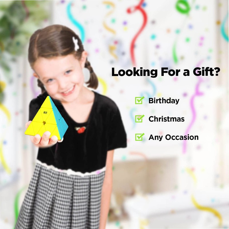 • SUITABLE FOR ALL AGES - Roxenda pyramid speed cube is the classic color-matching puzzle. Turn and twist four sides of the cube and ensure that each of the four faces only has one color. This speed cube is suitable for beginners and professional players. Great as a Christmas / Birthday gift for friends, family members, beginners and pros.