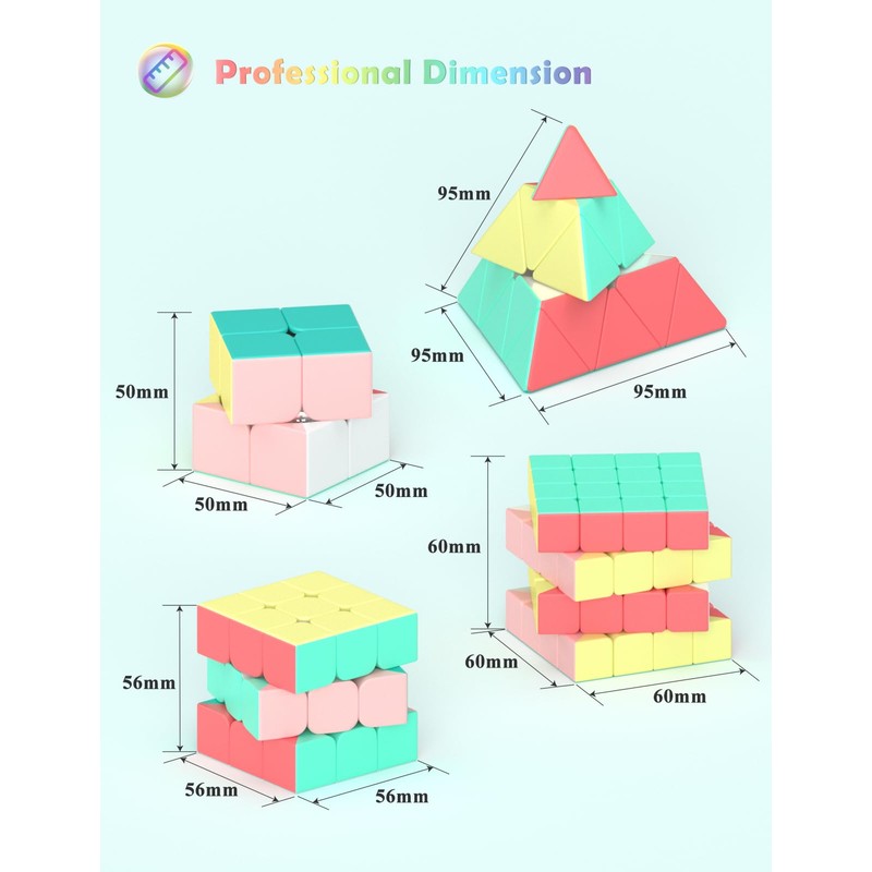 ROXENDA Speed Cube Set, 2X2 3X3 4X4 Pyramid Cube Stickerless Fast Cube with Instruction [4 Pack] (Macaron Cube Set)