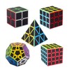 Roxenda Speed Cube Set, [5 Pack] Magic Cube Bundle of 2x2 3x3 4x4 Megaminx Cube and Pyramid Cube Smoothly Carbon Fiber Sticker Speed Cubes Collection for Kids Teens & Adults