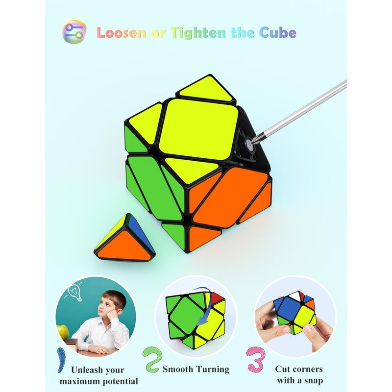 - Different challenge – Roxenda Skewb speed cube is a newly designed irregular puzzle cube, which breaks the traditional positive-order speed cube, and the difficulty of restoration is even more challenging! This special-shaped Magic Cube will surely bring you more fun and challenges.