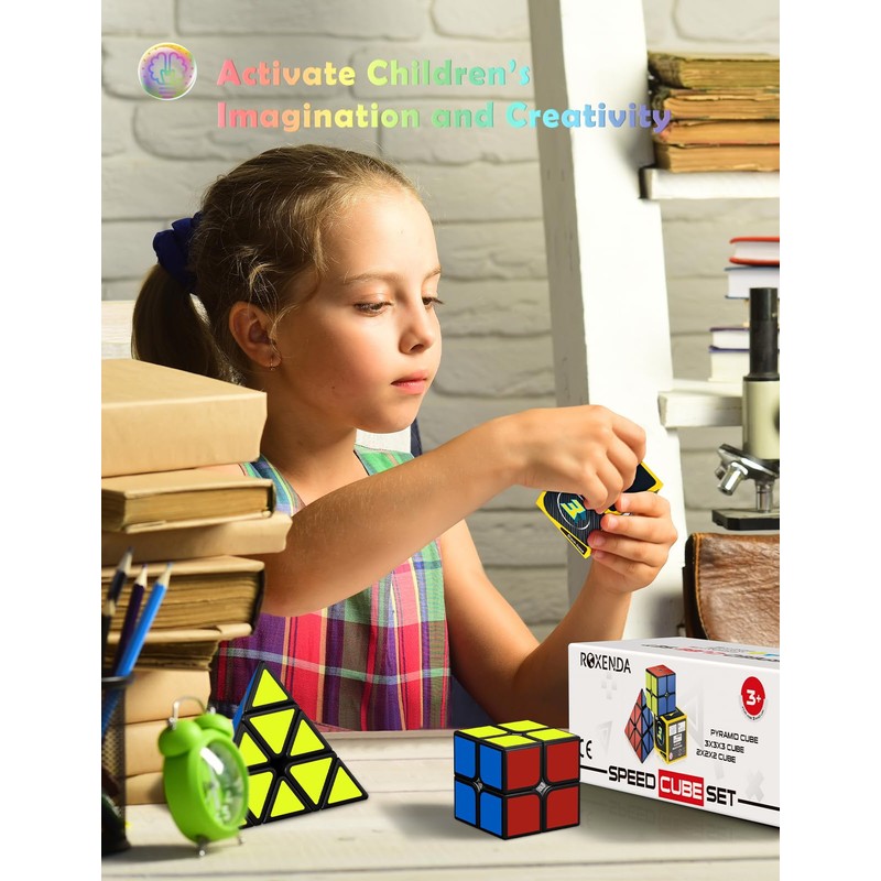 Roxenda Zauberwürfel Set, Original Speed Cube Set mit 2x2 3x3 Pyramide Speedcube, Einfaches Drehen & Flüssiges Spielen, Aufkleber Version (Sticker)