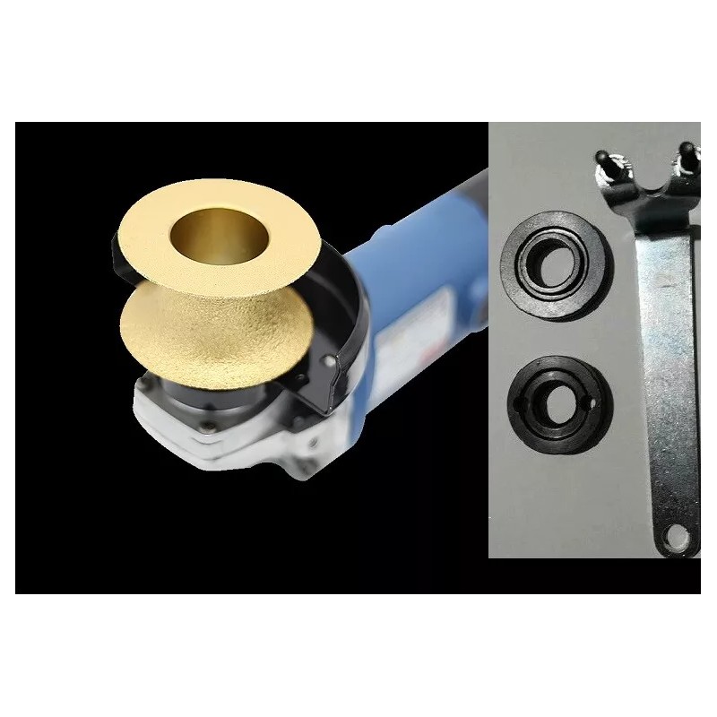(f) One Lock Ring Nuts and wrench set (the pairs of lock ring nut is necessory to attach the router bit to your 5/8"-11 thread spindle grinder / polisher).