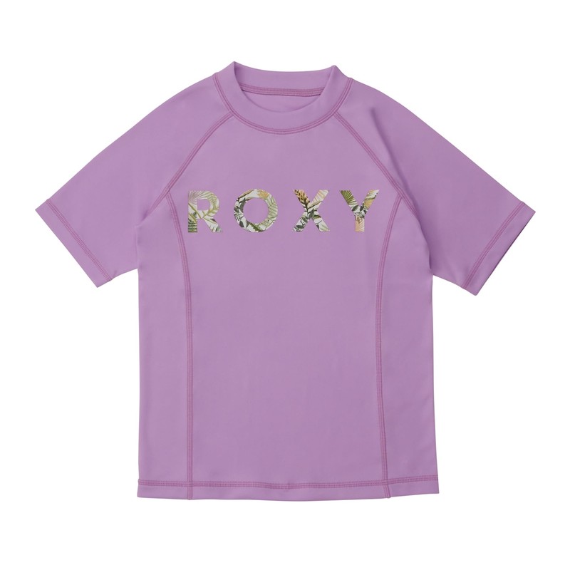 Roxy TLY231109 Rash Guard, Botanical Pattern, Crew Neck, Girls, Short Sleeve Rash Guard, LIL