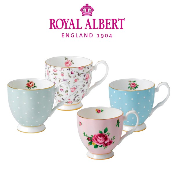 Royal Albert New Imperial Rose Footed Mug 4P Set / 로얄알버트 뉴황실장미 푸티드 머그4P세트