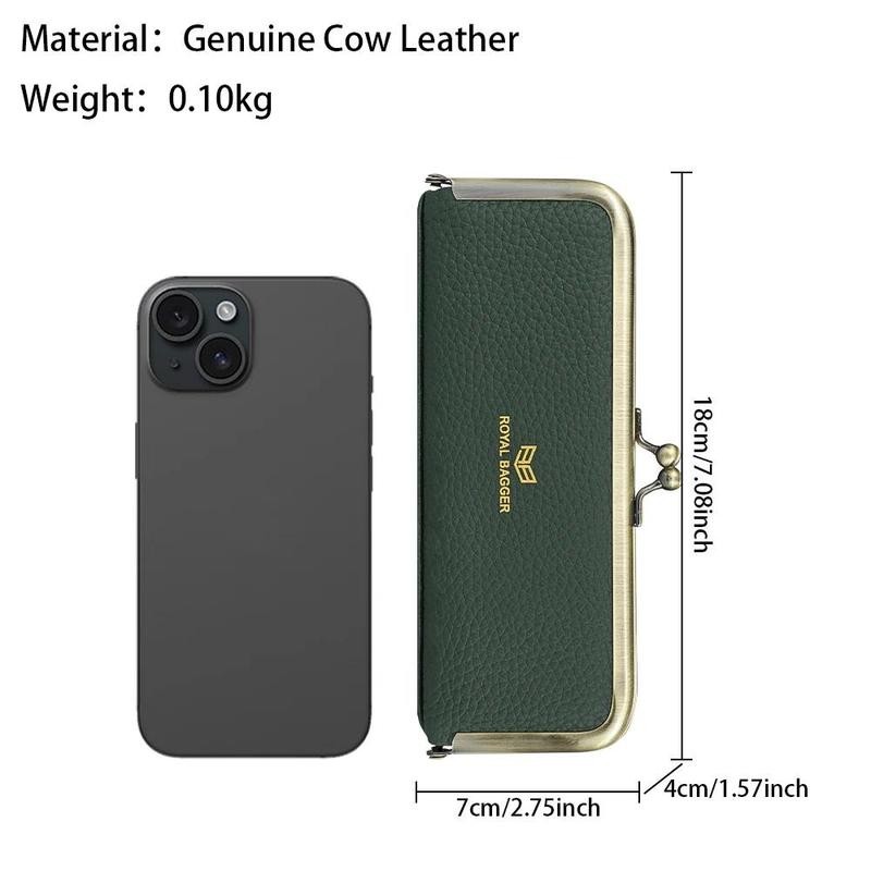 Royal Bagger Genuine Leather Fashion Glasses Case - RFID Blocking, Fashion Pencil Bag with Kiss Lock, Coin Purse for Women 2135:_black