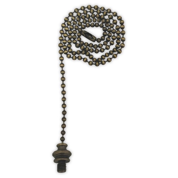 Royal Designs antique brass fan pull chain with a finial adapter is the perfect addition to your ceiling fan! Add any lamp finial to the end of your fan pull chain for customization. Conveniently adjust the settings of your ceiling fan and light with our fan pull chain. Simply pull the chain to turn your fan and/or light on and off. Royal Designs fan pull chains have an antique brass finish and are coated with protective Lacquer to protect against discoloration and tarnishing. All RDI fan pull chains are standard length. Customize an existing fan or fixture in your home. Easy to install.