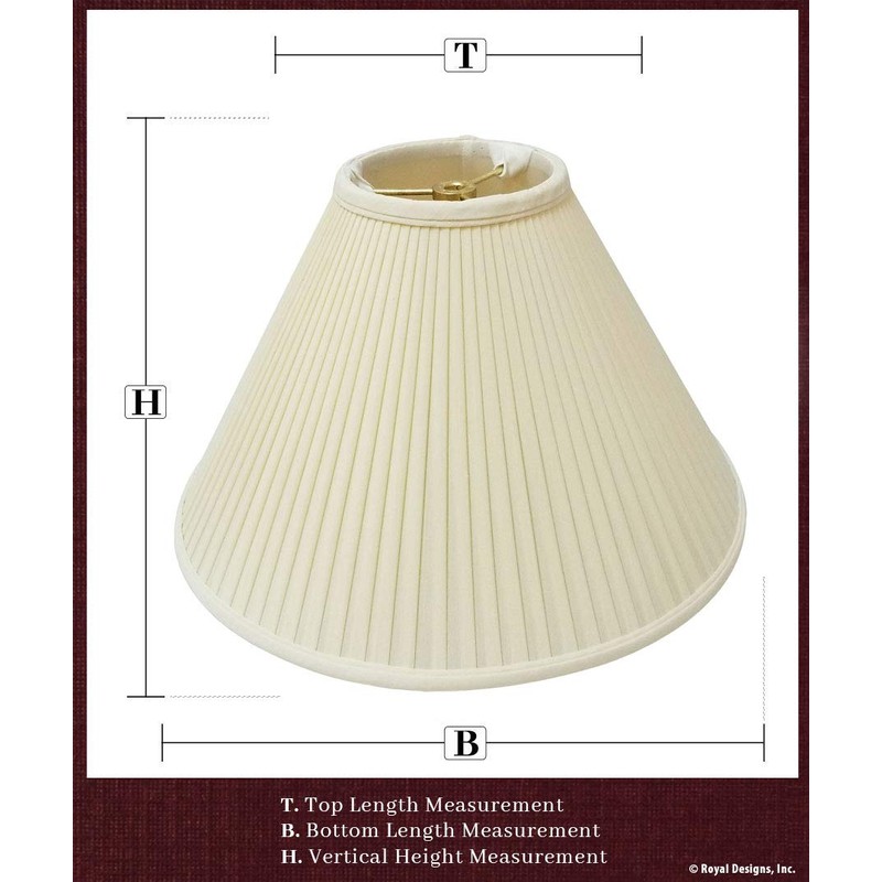 This Flare Bottom Outside Corner bell lamp shade is a part of Royal Designs, Inc. Royal Designs has been in the lamp shade business since 1993 with their multiple shade lines that exemplify handcrafted quality and value. Our basic lamp shades collection is perfect for anyone looking for simple yet stunning lamp shades. The lamp shades are available in a variety of shapes, sizes, colors, and styles. Our basic shades will blend into your home or office interiors and act as an intriguing decor piece. Take a pick from our Cut- corner or the elegant V-notch style, to add the touch of the appealing atmosphere for either reading, romance, or dining Specification: Brand: Royal Designs, Inc. Type: Square Bell Lamp Shade Material: Fabric Shape: Bell Color: Linen White Size: 5 x 10 x 8.75 inchs Bulb Type: Incandescent Max Bulb Wattage: 100 watts