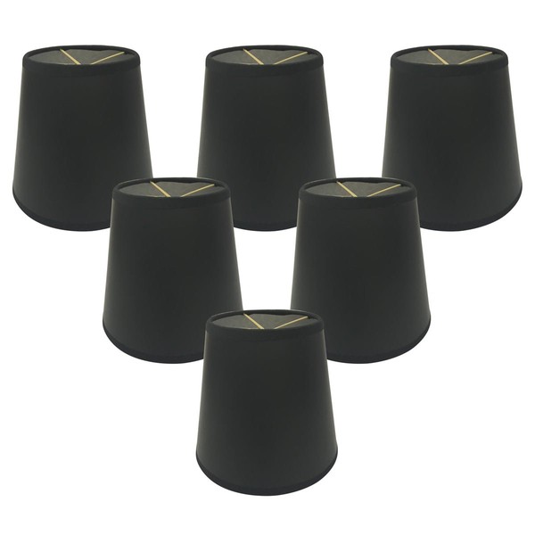 This 5 inch parchment empire black chandelier lampshade - 3 X 5 X 4.5 is a part of royal designs, Inc. Timeless chandelier shade collection and is perfect for anyone who is looking for a simple yet stunning lampshade. Royal designs has been in the lampshade business since 1993 with their multiple shade lines that exemplify handcrafted quality and value. Exterior material: high quality heavy parchment paper interior fabric: silver lining fitter: flame clip (fc) fitter designed to fit over a candelabra bulb base. (Most clip-on lampshades are designed with double clip) suggested maximum wattage is 60-watt candelabra bulb. Trim: rolled Edge trim frame: brass frame that is also rust resistant HEIGHT is measured by vertical HEIGHT from top to bottom, not slant of the shade.