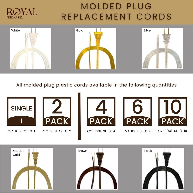 Royal Designs, Inc. 8 Foot Replacement Lamp Cord with Molded Plug and Rotary Dimmer Switch, Stripped Ends Ready for Wiring, SPT-1 Safe for USA, CO-1001D-SL-8-2, Silver, Pack of 2