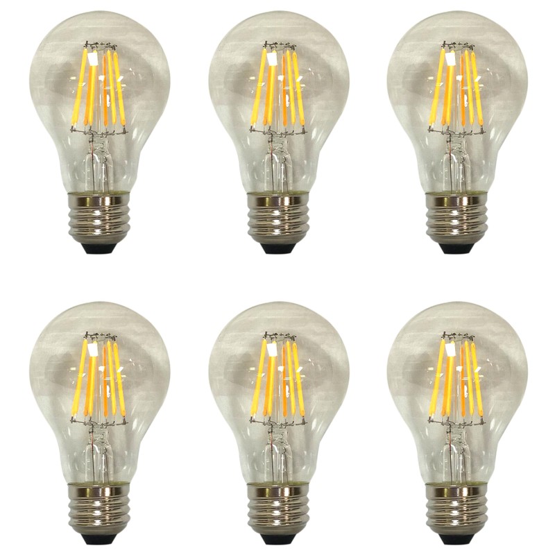 Royal Designs, Inc. LB-1506-6 Vintage Dimmable Edison Light Bulbs with E26 Medium Base, 8W LED Equivalent 60W Incandescent, Standard A17 Shape, Clear, 6-Pack