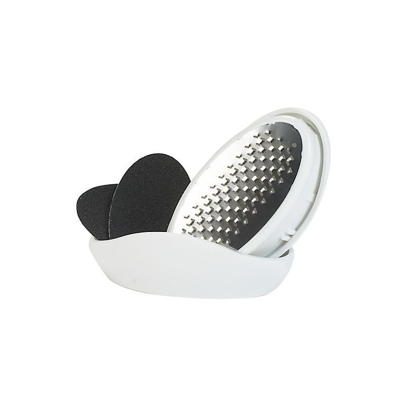 - Discard old cartridge in household trash. Attach a new cartridge to callous remover by snapping into place. Replace a worn emery pad by peeling off used pad from the bottom cover and affixing a new one.