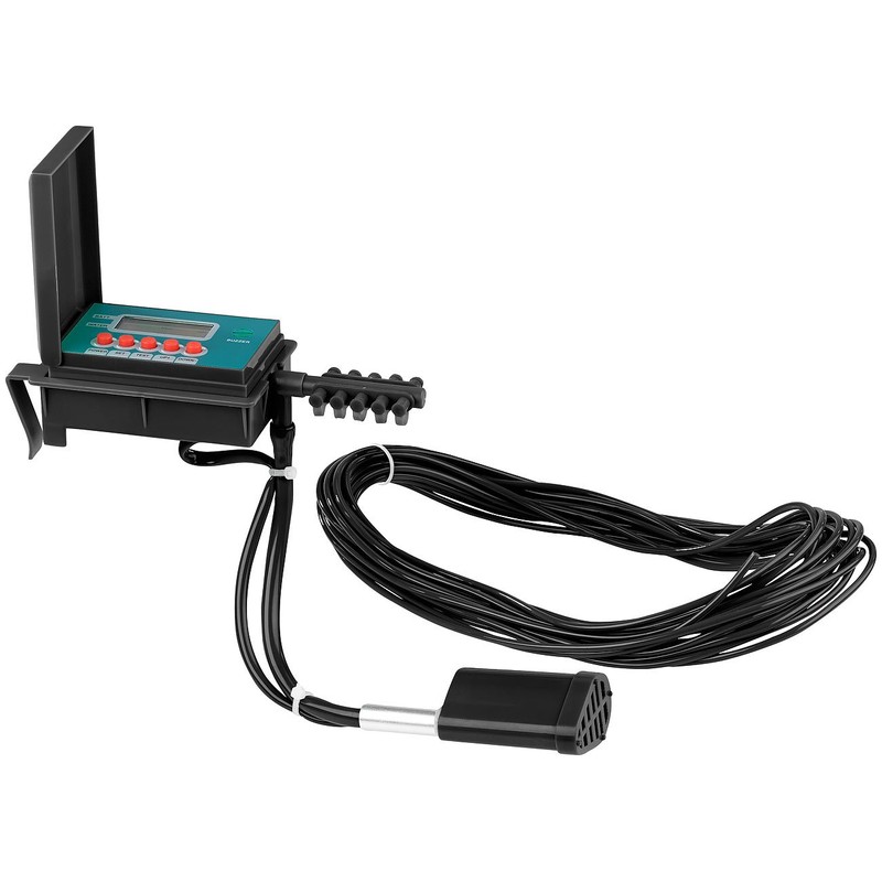 - Automatic watering system for up to 10 indoor plants. LCD display shows watering frequency and duration, signals when battery and water level is low. Stainless steel pins for fixing the hose inside the flower pot.