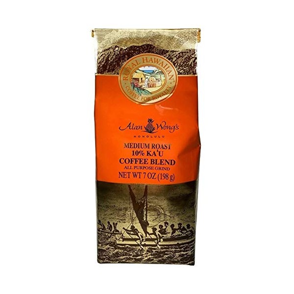 Royal Hawaiian 10% Ka'u Coffee Blend, Alan Wong's Medium Roast, Ground, 7 Ounce Bag