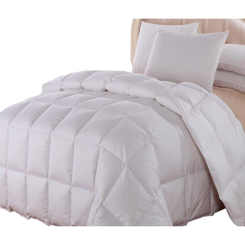 - Luxury Checkered dobby down comforter provides medium warmth for year-round comfort