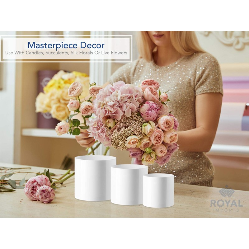 - Quality: This hard plastic white round vase is crafted of best impact-resistant acrylic material. Each white cylinder vase features thick durable acrylic walls and weighted base to prevent toppling.