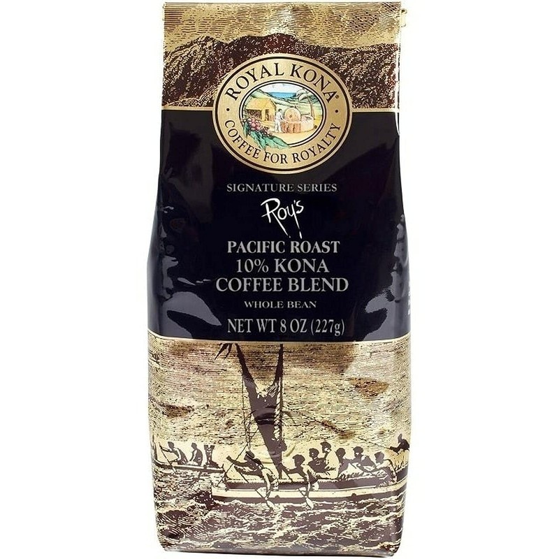 Royal Kona 10% Kona Coffee Blend, Roy's Pacific Roast, Whole Bean, 8 Ounce Bag