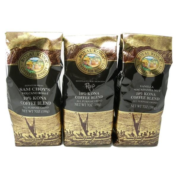 Royal Kona Coffee Triple Variety Pack (All Purpose Grind) - 21 oz