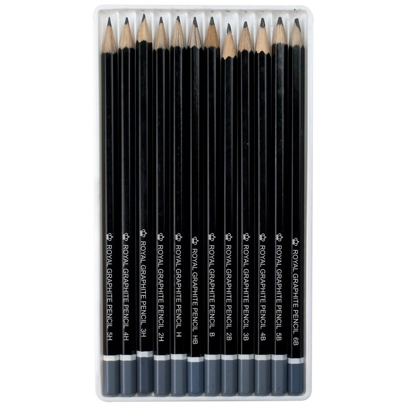 Royal & Lang nickel essentials graphite sketching pencils are excellent quality pencils for any level artist, regardless of age or experience. These hexagonal, natural wood cased pencils have thick, soft, leads allow precise control for detail line work, shading, cross-hatching, and other techniques. The leads provide good opacity to explore tonal values in sketches. This set contains 12 graphite pencils.