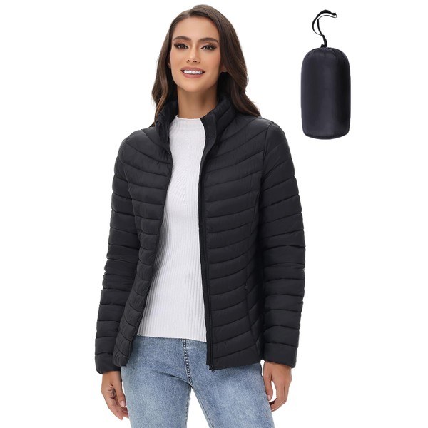 ROYAL MATRIX Women's Packable Puffer Jacket Lightweight Quilted Puffer Jacket Winter Warm Zip-up Jacket Puffy Jacket with Stand Collar (Black, M)