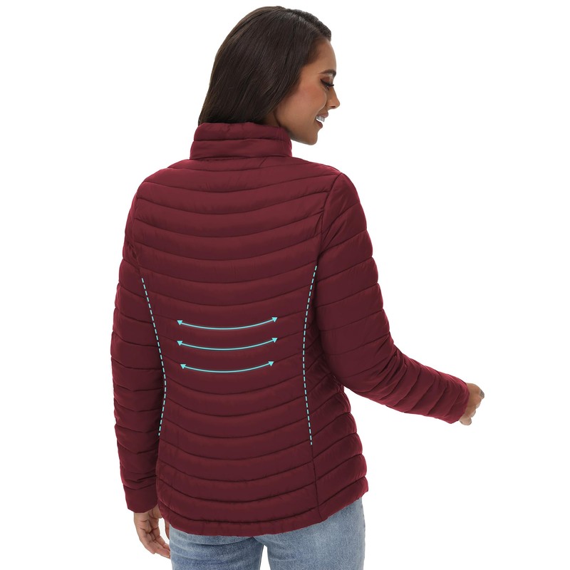 ROYAL MATRIX Women's Packable Puffer Jacket Lightweight Quilted Puffer Jacket Winter Warm Zip-up Jacket Puffy Jacket with Stand Collar (Wine, L)