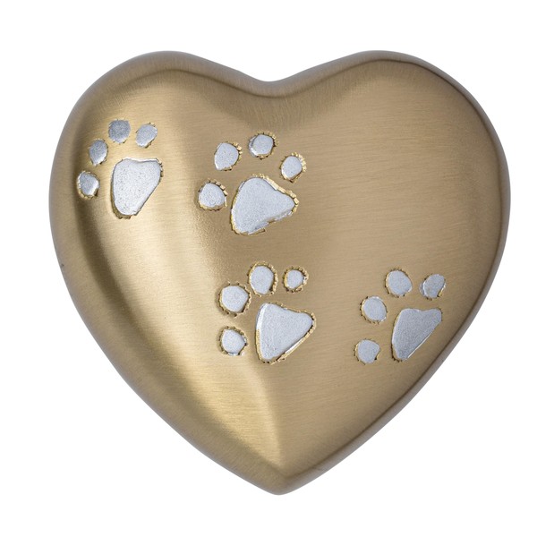- These exclusive keepsake heart urns are made of finest quality Brass and come in 5 colors with paw print – Chocolate, Pewter, Gold, Black and Red.