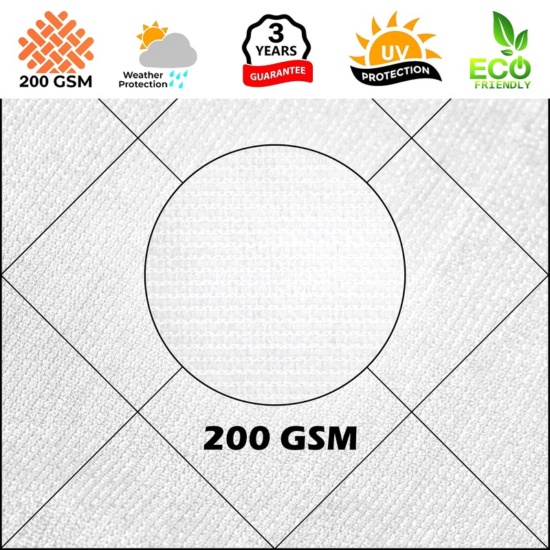 • 【DURABLE MATERIAL】: Our Shade Sail is 100% crafted from 200 GSM HDPE (High-Density Polyethylene). Its woven knitted design is breathable, preventing water pooling and strong wind. Blocks up to 95% of harmful UV rays, our Shade Sails come with a 3-year warranty against UV degradation. Built to endure sun exposure, it resists UV and fading while providing a noticeable temperature reduction of up to 15 degrees compared to unshaded areas.