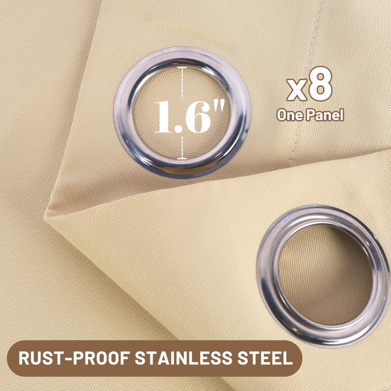 - Package Includes: One panel 54'' W x 84'' L outdoor curtain. Each curtain has 8 rust-proof silver grommets on the top, and the eyelet is 1.6 inches in diameter, which fits most curtain rods, making it easy to hang and simple to install.