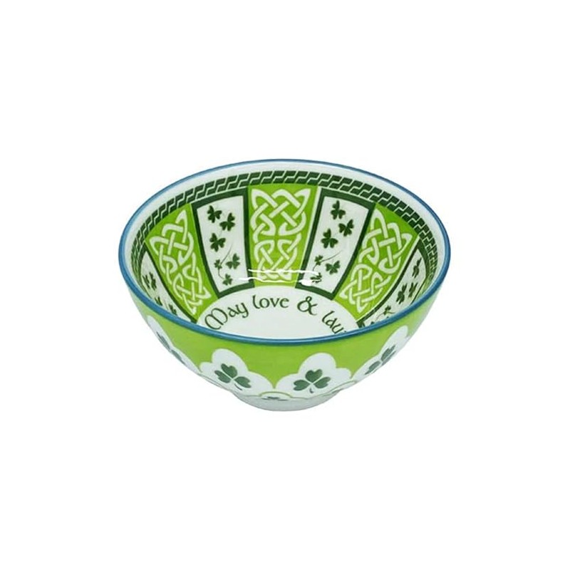 Royal Tara Irish Ceramic Blessing Bowl Shamrock Celtic Knotwork Kitchenware Serving Soups Stews Salads Bone China Mixing Bowl for Kitchen (Ceramic, Green-May love & laughter 4.3'')