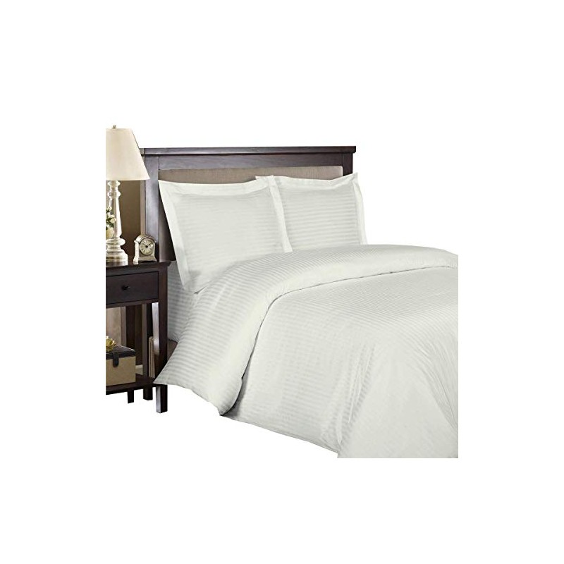 Royal Tradition Stripes Ivory 300 Thread Count King/California King Duvet Cover Set 100% Cotton 3PC Comforter Cover Set Button Enclosures