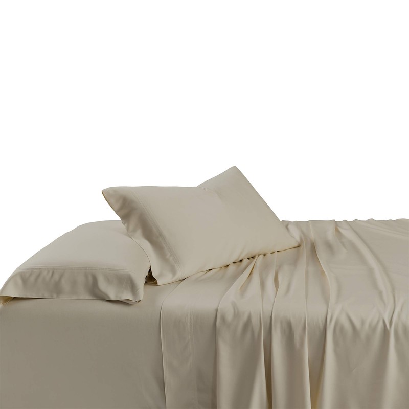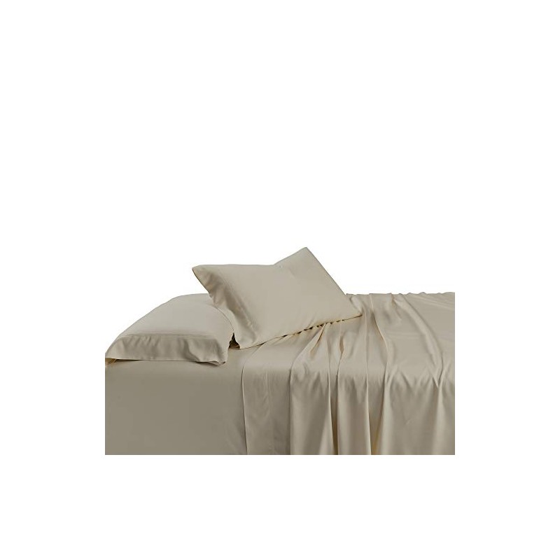Royal Tradition Viscose from Bamboo-Cotton Blend Sheet Set (Top-Split-King Size, Sand-Solid) Durable, Breathable Deep Pocket Bed Sheets