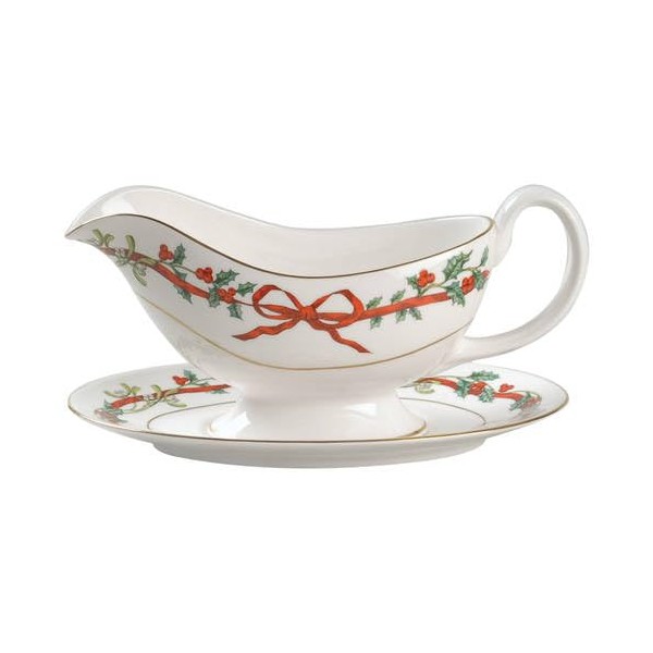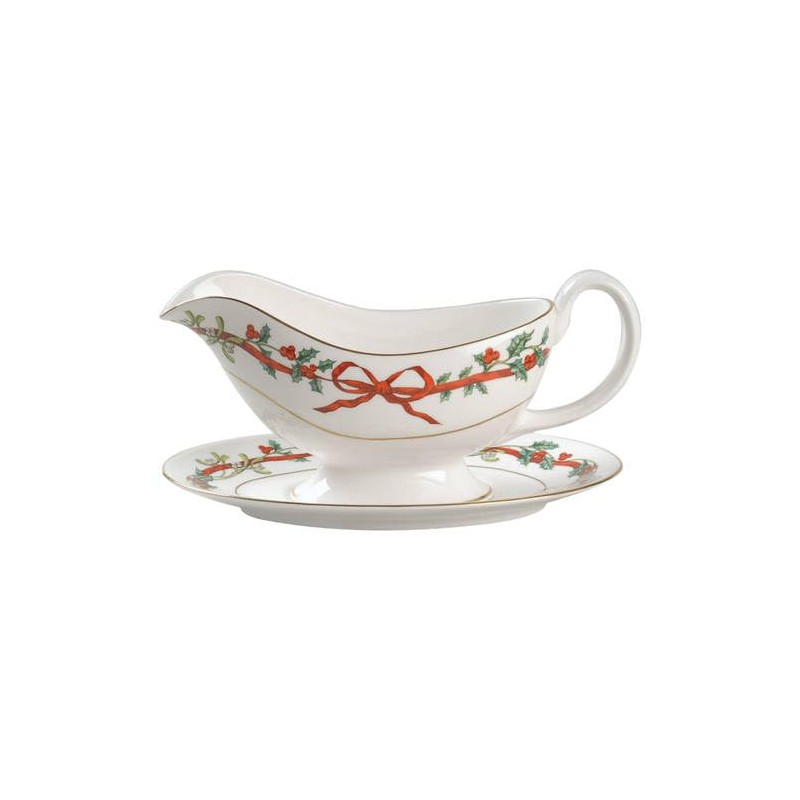 Royal Worcester Holly Ribbons Gravy Boat & Underplate