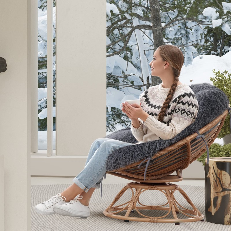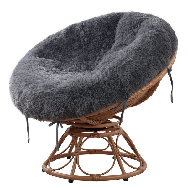 ROYALAY Faux Fur Cover for Papasan Cushion with Fluffy Plush,Shaggy Slipcover, Removable Chair Cushion Cover with 8 Ties-Cover Only-Fit 50-52 in(Dark Grey, 55 in)