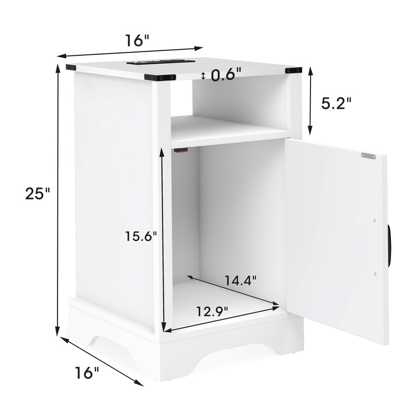 - 【All About Easy-Peasy Access! 】Product Size: 16 "D x 16 "W x 25 "H.The side table greets you with a generous 180° opening with metal hinges for easy access. The doors are held in place by a magnetic metal latch, adding a touch of convenience and security.