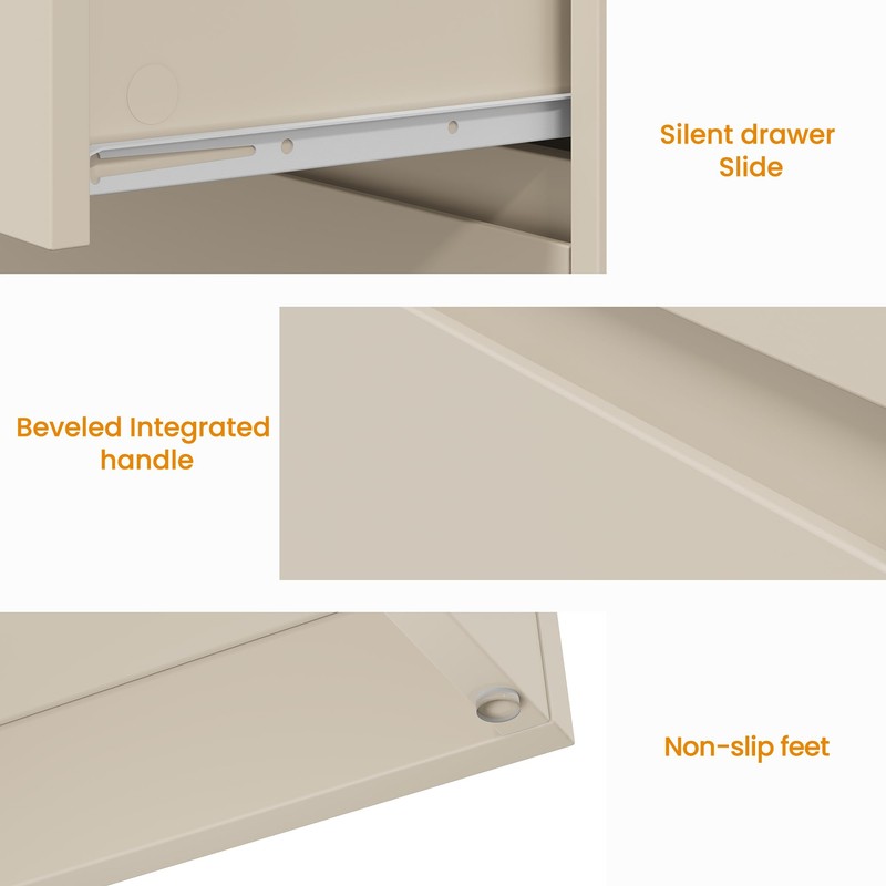 - Timeless Elegance: Bathed in a soothing beige tone, this nightstand exudes quiet elegance through its seamless, minimalist form. The soft matte finish enhances its warm presence, while the handle-free design and concealed sliding system maintain a sleek, uninterrupted silhouette—simple, serene, and refined.