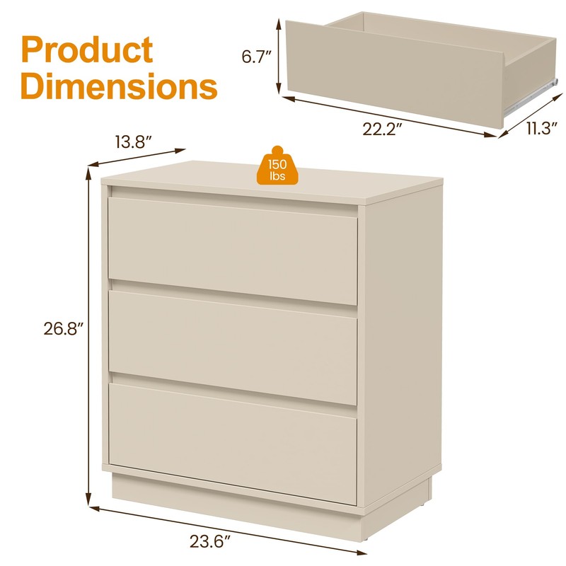 | Size: | 13.8"D x 23.6"W x 26.8"H (3 Drawers) |