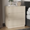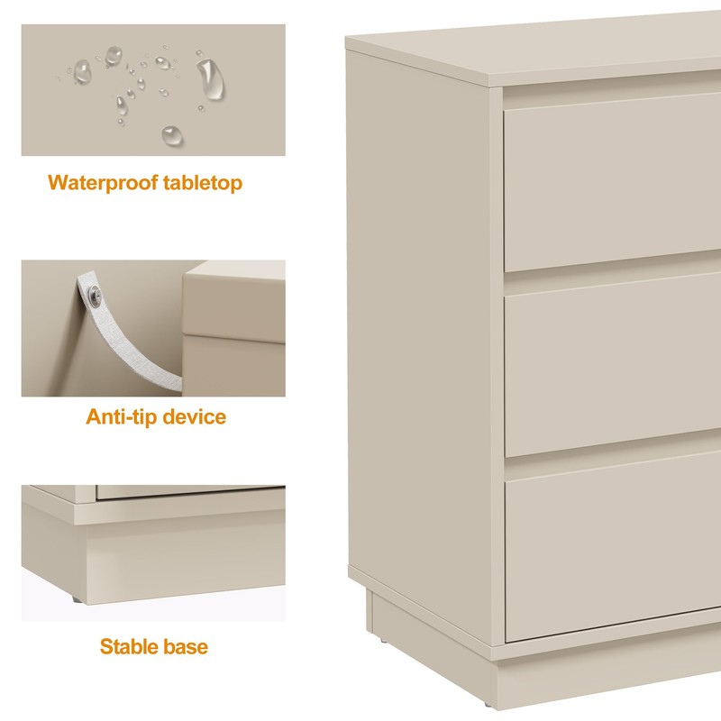 This extra-large nightstand blends minimalist style with everyday function. Finished in a soft beige matte, it brings a calm, refined presence to any room. Three spacious drawers keep your essentials organized—whether it’s bedtime reads in the bedroom, gadgets in the living room, or baby supplies in the children's room. The wide, water-resistant top is perfect for a lamp, photos, or a cup of tea. Its clean, handle-free design fits effortlessly into modern, cozy, or Scandinavian-inspired spaces.