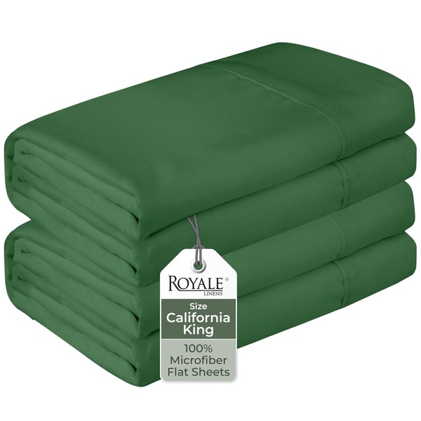 Royale Linens 2 Pack Bulk Flat Sheet Set - Top Sheets -Soft Microfiber - Stain Resistant - for Hotel, Massage Table, Hospital, Dorm- California King Flat Sheet Sold Separately (King Cal, Hunter Green)